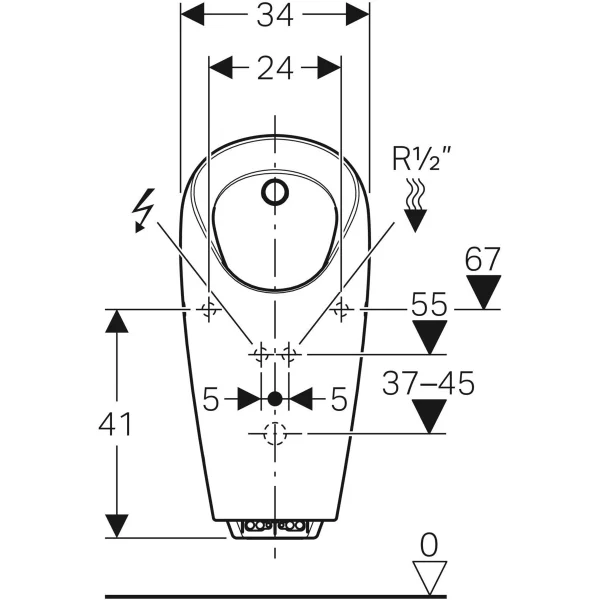 URINOIR GEBERIT SELVA AVEC COMMANDE INTEGREE, ALIMENTATION SUR SECTEUR